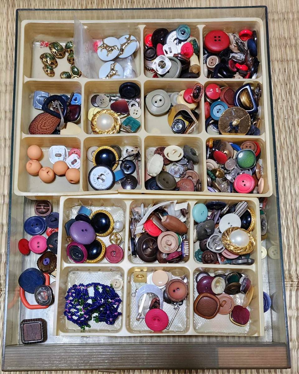 - 昭和レトロ 大量 飾りボタン&ボタンetc 引き出し3ケース分