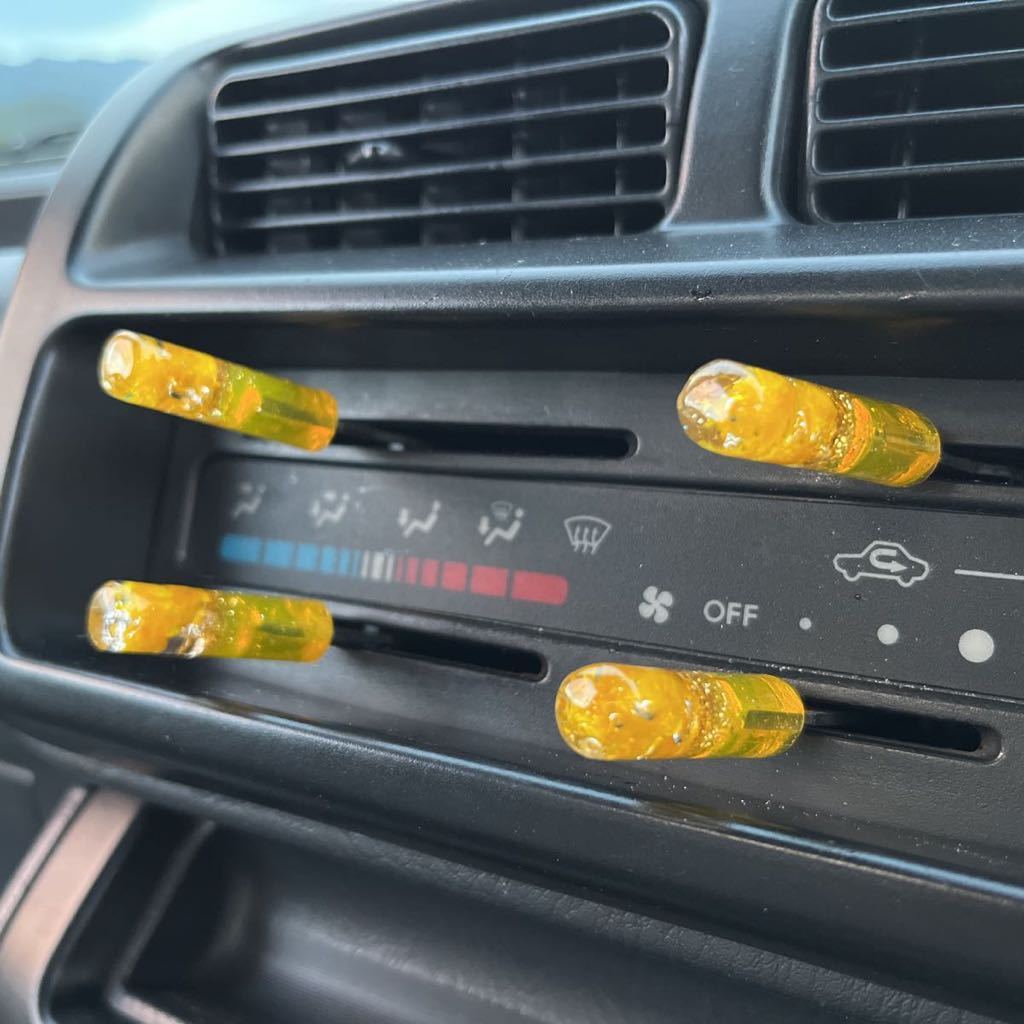> 水中花 ヒータースイッチ エアコンスイッチ ピン 4本セット 黄色 ゴールドラメ デコトラ 一番星 当時 昭和 旧車 旧車會 グラチャン 暴走族