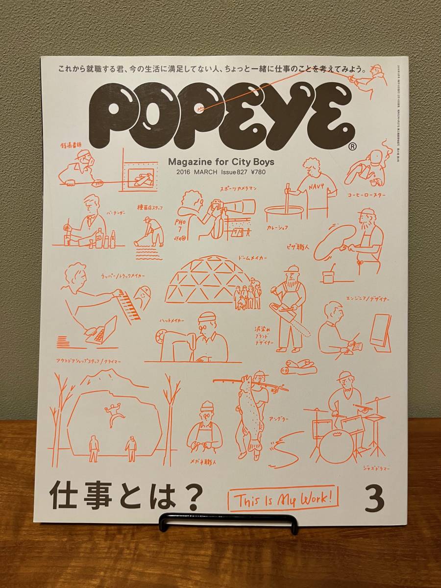 > 2016年 3月号 827 POPEYE ポパイ マガジンハウス 仕事 就職 働く インタビュー 工場 料理 本 車 横山剣 映画 龍笛奏者 サブカル おしゃれ