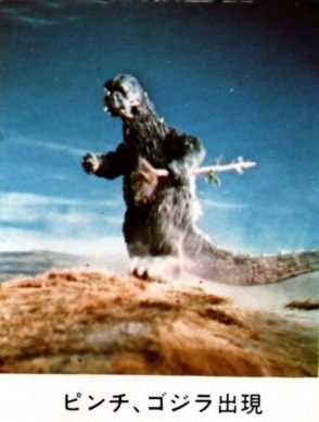 - 東宝 決戦!大怪獣 10円2枚引きミニカード 青62 ゴジラ 山勝? ピンチ、ゴジラ出現!! 『ゴジラ対メガロ』