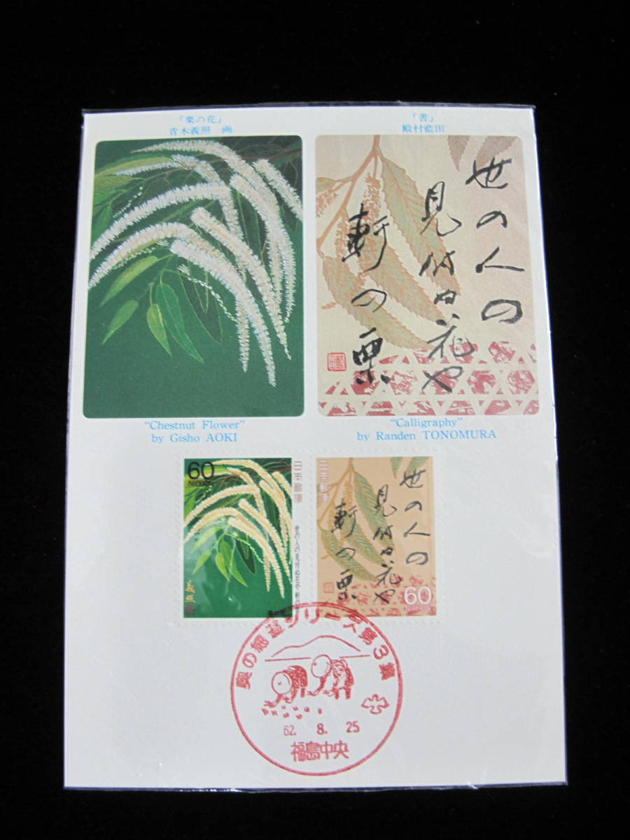 - MC 奥の細道シリーズ 第3集A 粟の花 書 全日本郵便切手普及協会 マキシマムカード 初日印