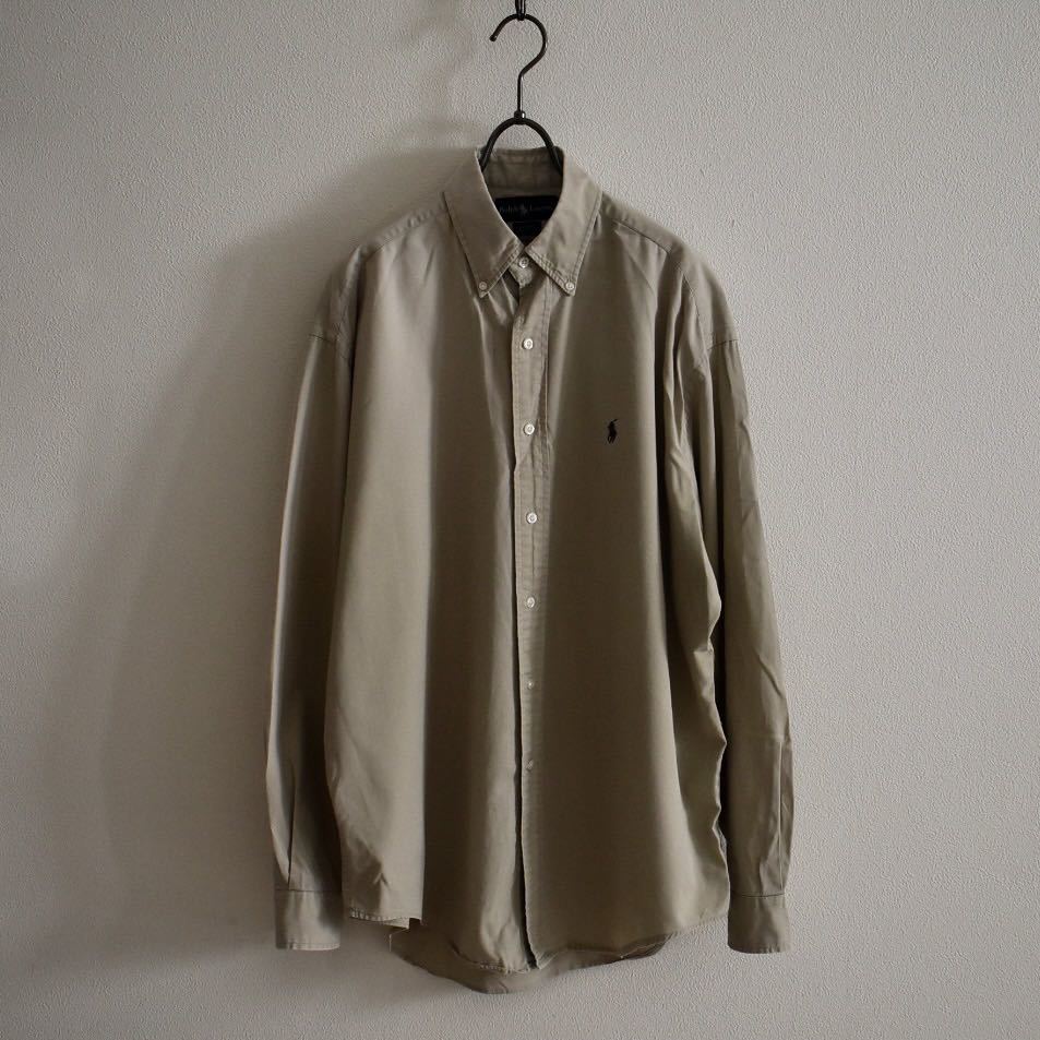 > 90s【USA製】POLO RALPH LAUREN BLAIRE ボタンダウンシャツ M ベージュ系 長袖 ポロラルフローレン オールド 米国製 ブレアー