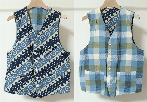 - Engineered Garments エンジニアードガーメンツ Reversible Vest Lt. Blue Jacquard Pattern Block リバーシブル ベスト S
