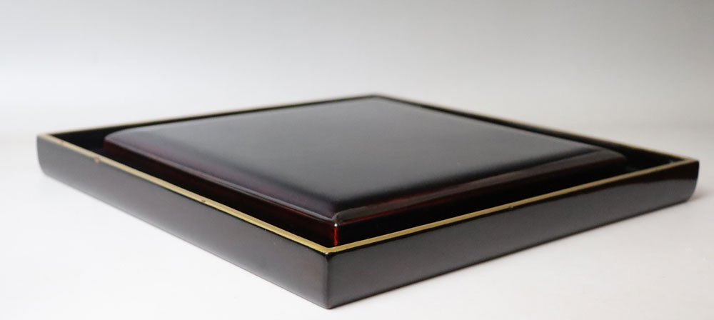 ・黒漆盆寸法 横29 奥28 高さ2,5 中朱塗り部位 横21,3 奥20,5 溝深さ0,3 (約㎝)