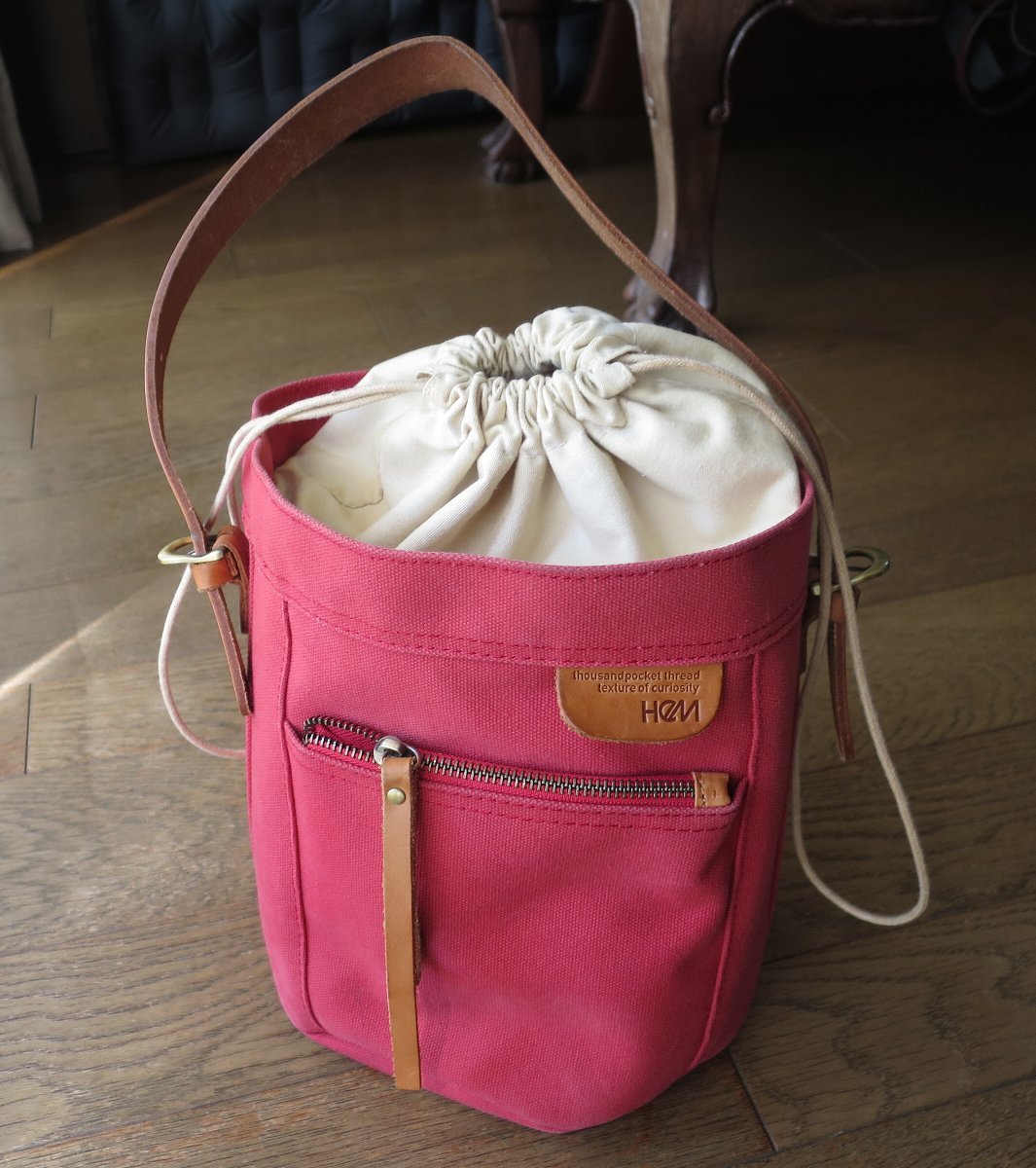 - Hem ヘム キャンバス トートバッグ レザーハンドル レッド・赤