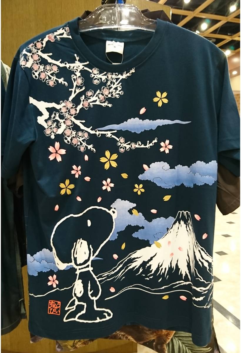 - 566◇スヌーピー 富士山 桜 和風柄 Tシャツ M 男女兼用 unisex L size USJ 2020 春夏 限定 希少 Snoopy ユニバーサルスタジオ ジャパン