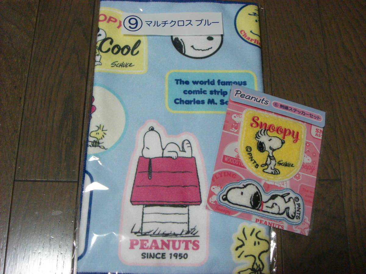 - スヌーピー 一番くじ マルチクロス(ブルー)&ステッカーセット