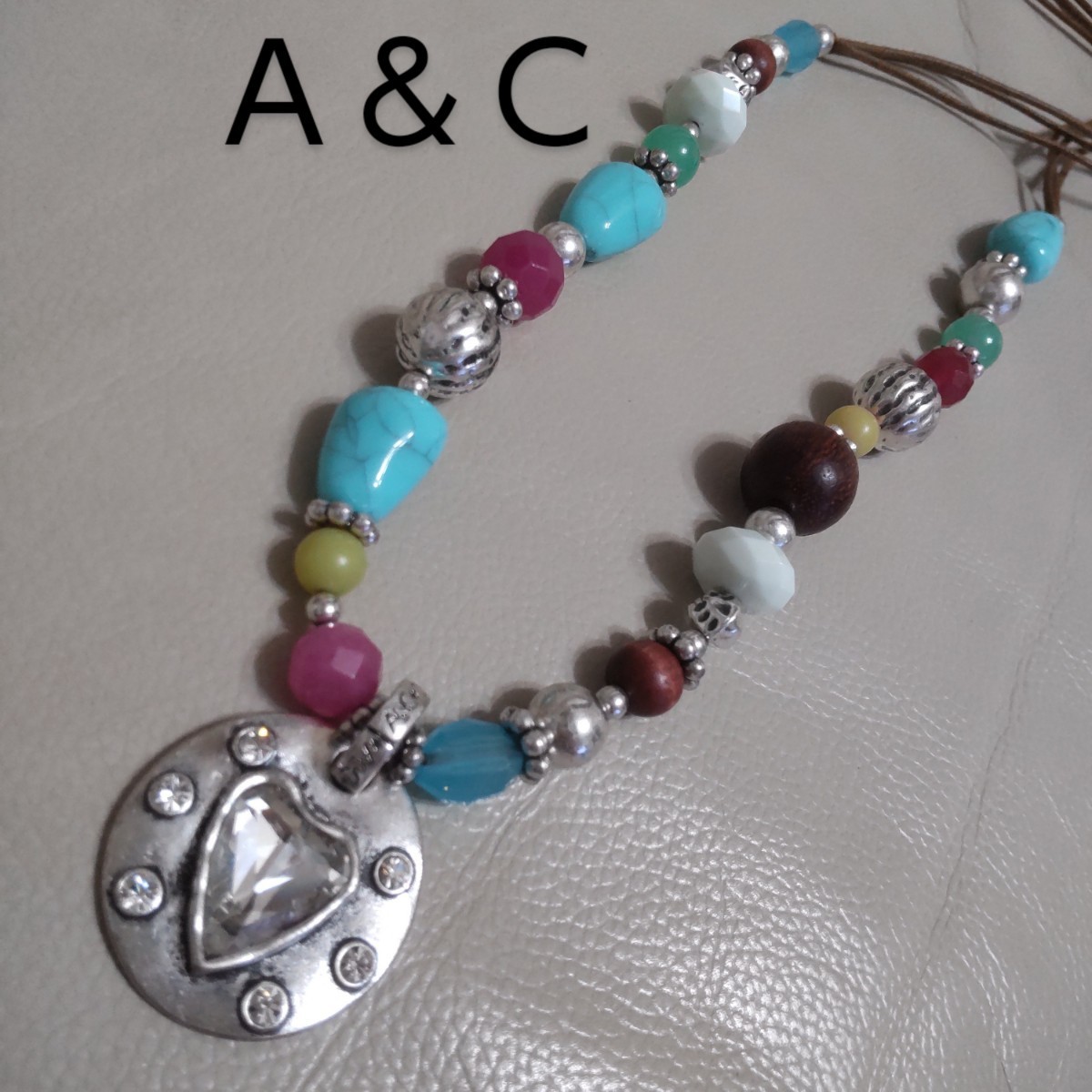 - ハート ネックレス カラフル ストーン ビーズ A&C AC アーツアンドクラフツ シルバー アクセサリー ジュエリー ビンテージ アンティーク風