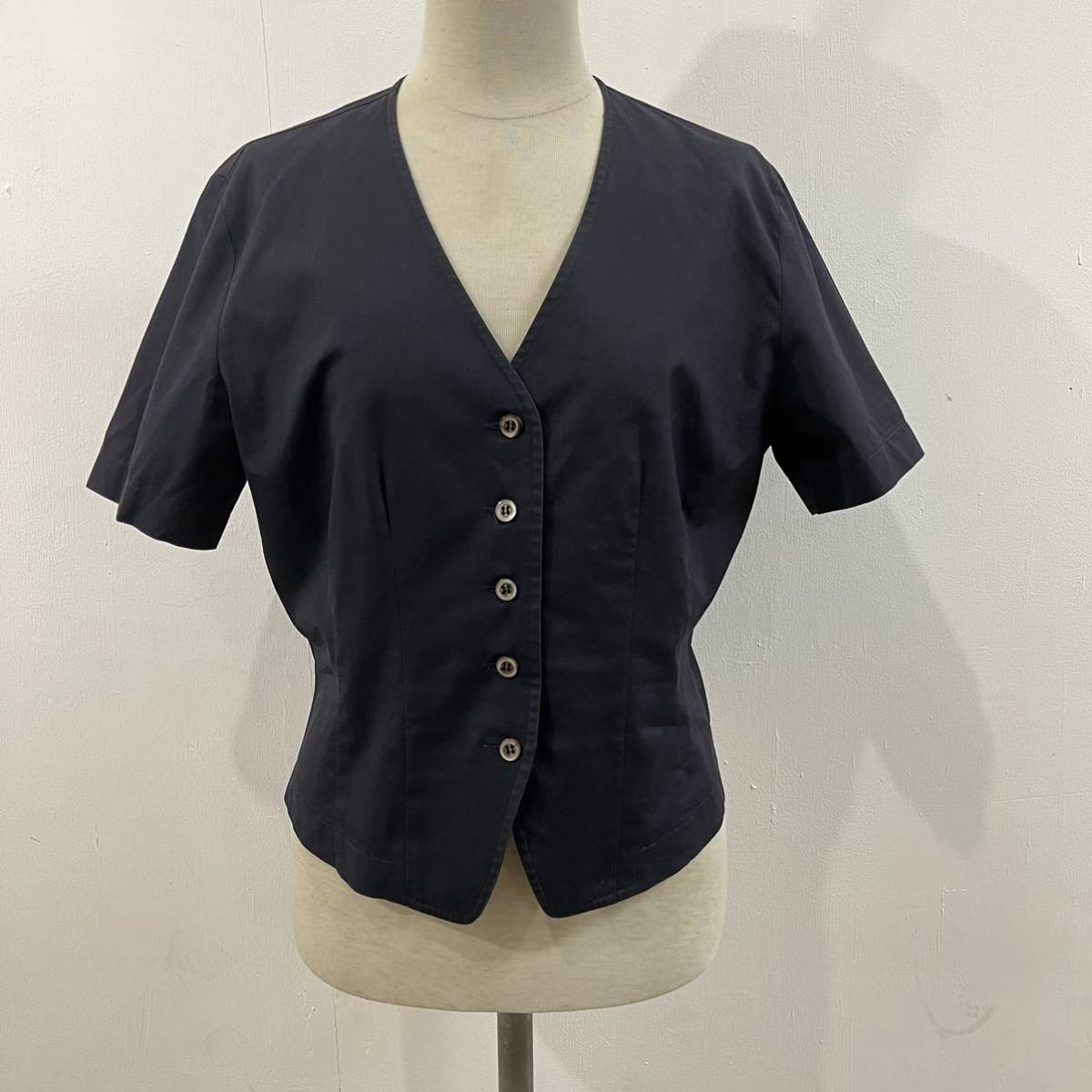 - 80s VINTAGE KENZO PARIS 半袖シャツ 半袖ブラウス Vネック 濃紺 日本製 ヴィンテージ オールド ケンゾー【レターパックライト郵送可】G