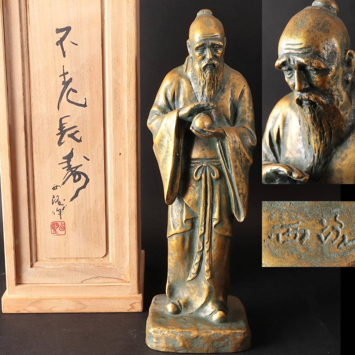 - ◆◇北村西望 「不老長寿」ブロンズ像 高さ30cm 重量2.52kg 銅製 共箱◇◆