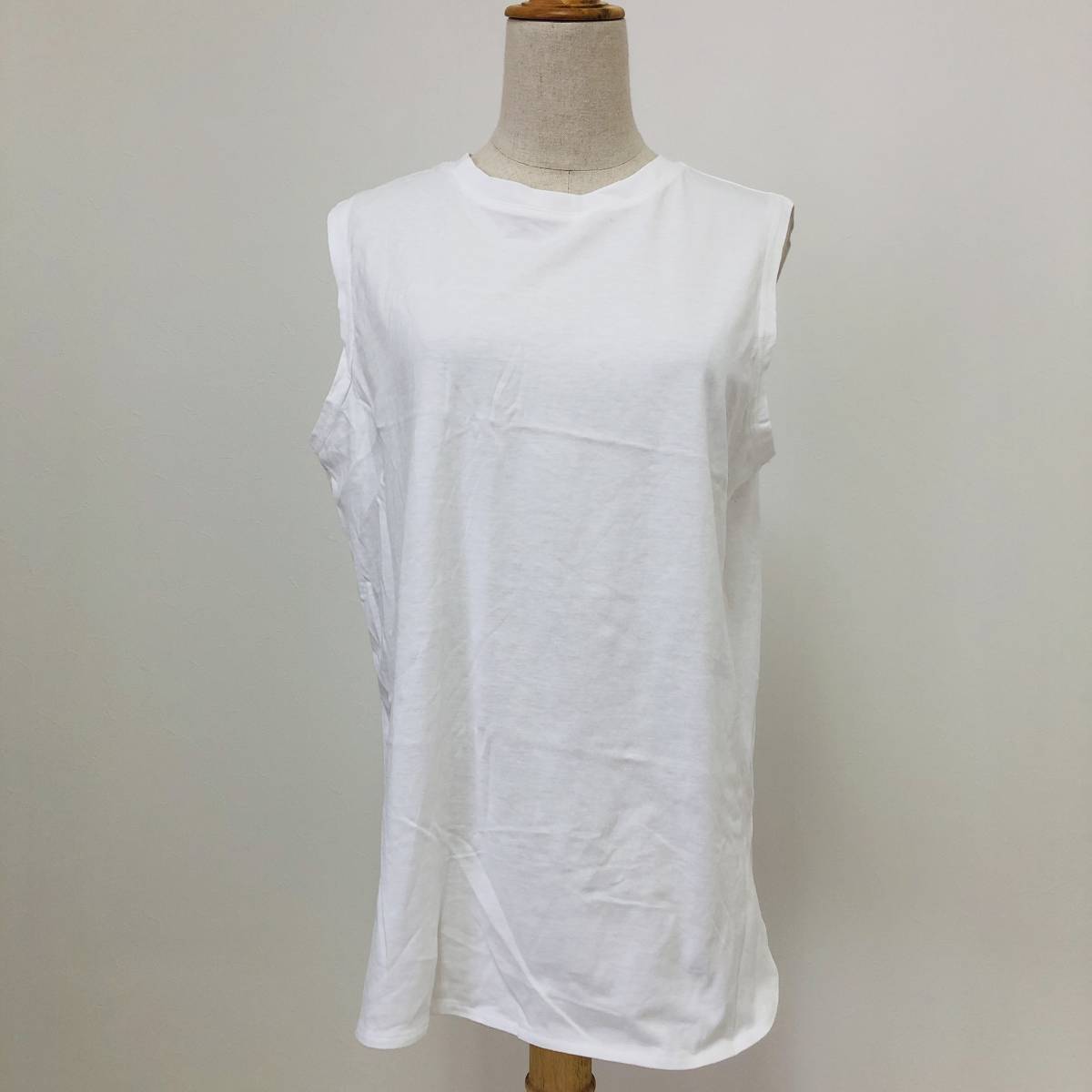 > k0429 極美品 Linoluce リノルーセ タンクトップ インナー 綿混 丸首 サイドスリット M 白 無地 レディース シンプルデイリーカジュアル