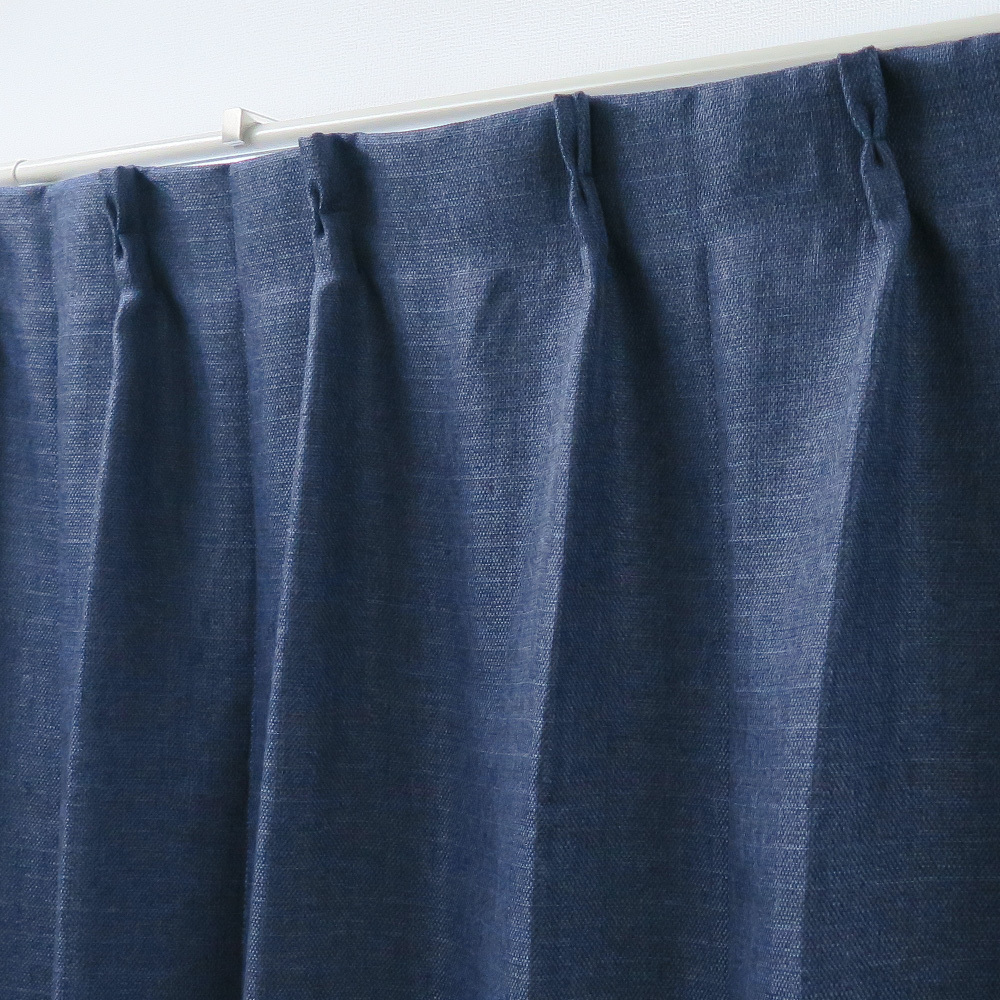 - 遮光カーテン 幅130cm×丈130cm2枚 y2950 ネイビー 遮光裏地付き 形状記憶加工付 遮光1級 オーダーカーテン 無地 ナチュラル