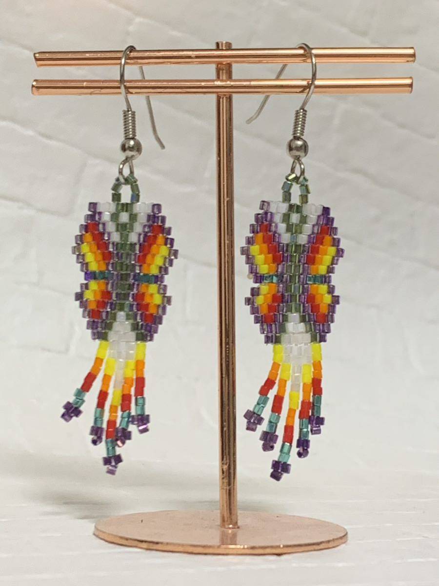 - インディアンジュエリー ビーズワーク バタフライ ビーズピアス ネイティブアメリカン ハンドメイドピアス ナバホ インディアン