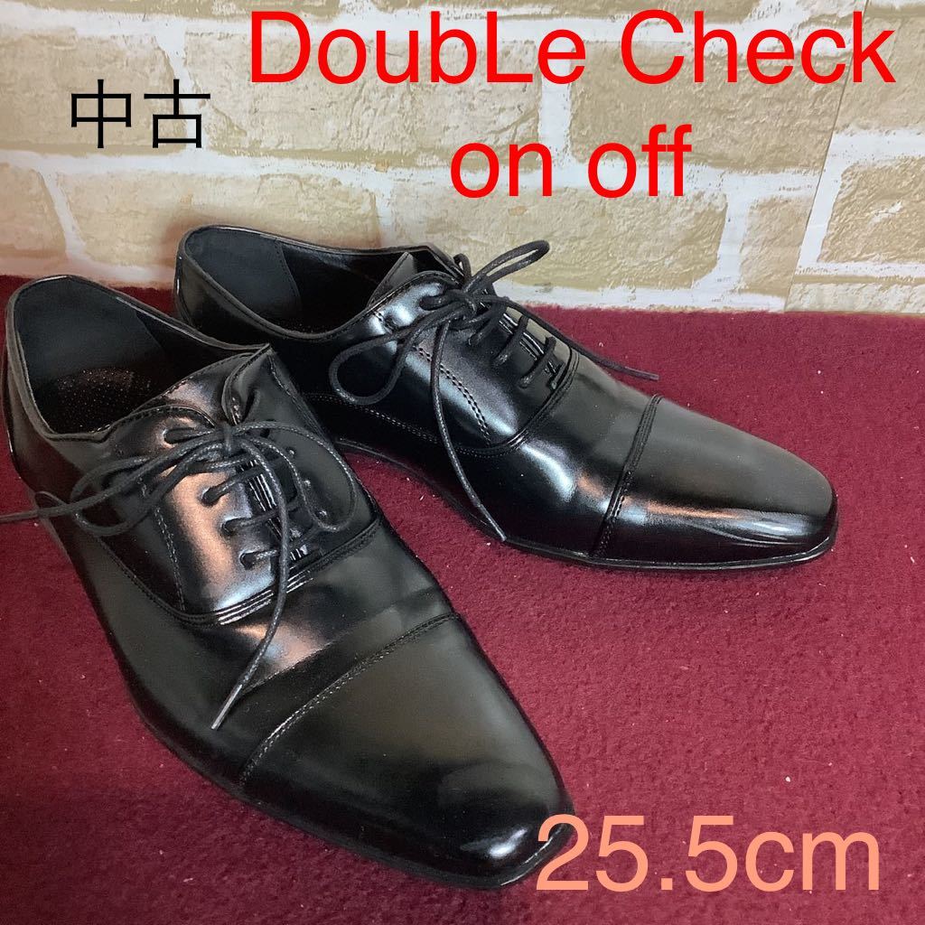 - 【売り切り!送料無料!】A-326 DoubLe Check on off!ビジネスシューズ!黒!25.5cm位ストレートチップ !仕事!ビジネス!営業!通勤通学!中古!