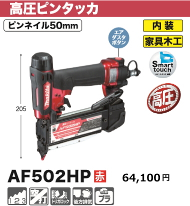 - マキタ 50mm 高圧ピンタッカ AF502HP 赤 新品