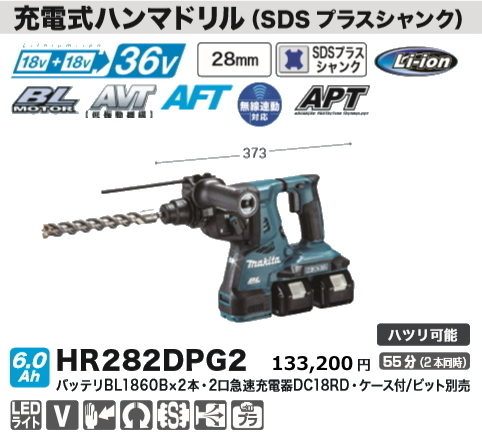 > マキタ 28mm 充電式ハンマドリル HR282DPG2 18Vx2本 36V 6.0Ah 新品