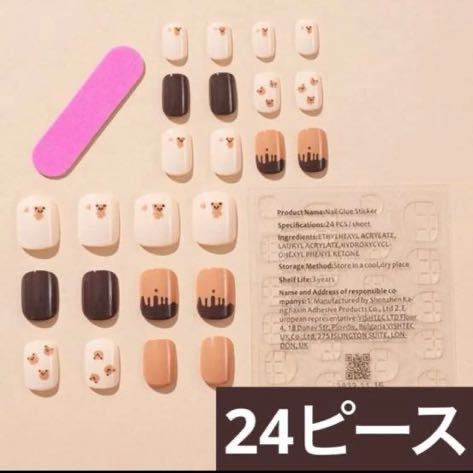 - とろ〜りチョコレート くまちゃん ネイルチップ 24ピース 接着剤やすり付き