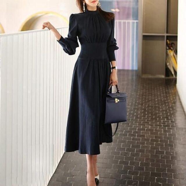 - 【ネイビー★Mサイズ】ロングワンピース レディース エレガント秋冬