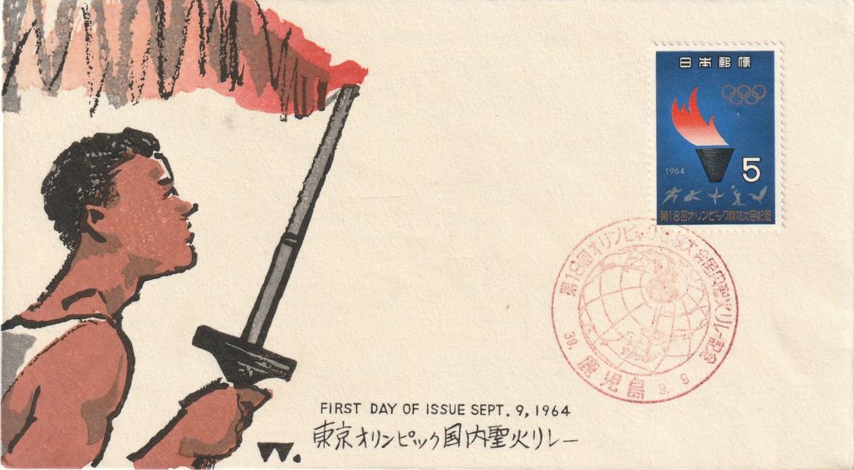 - FDC 1964年 東京オリンッピク国内聖火リレー 5円 中村浪静堂