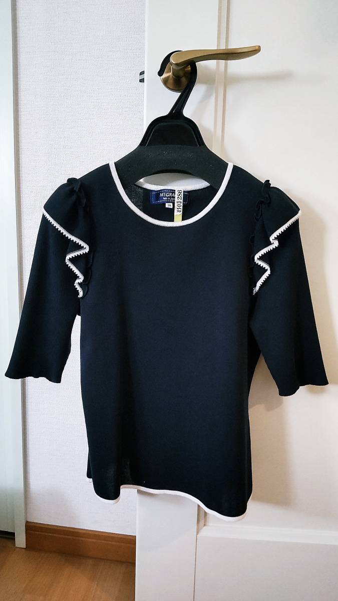 - 美品 エムズグレイシー ニット セーター 38 フリル 紺 クリーニング済み 五分袖