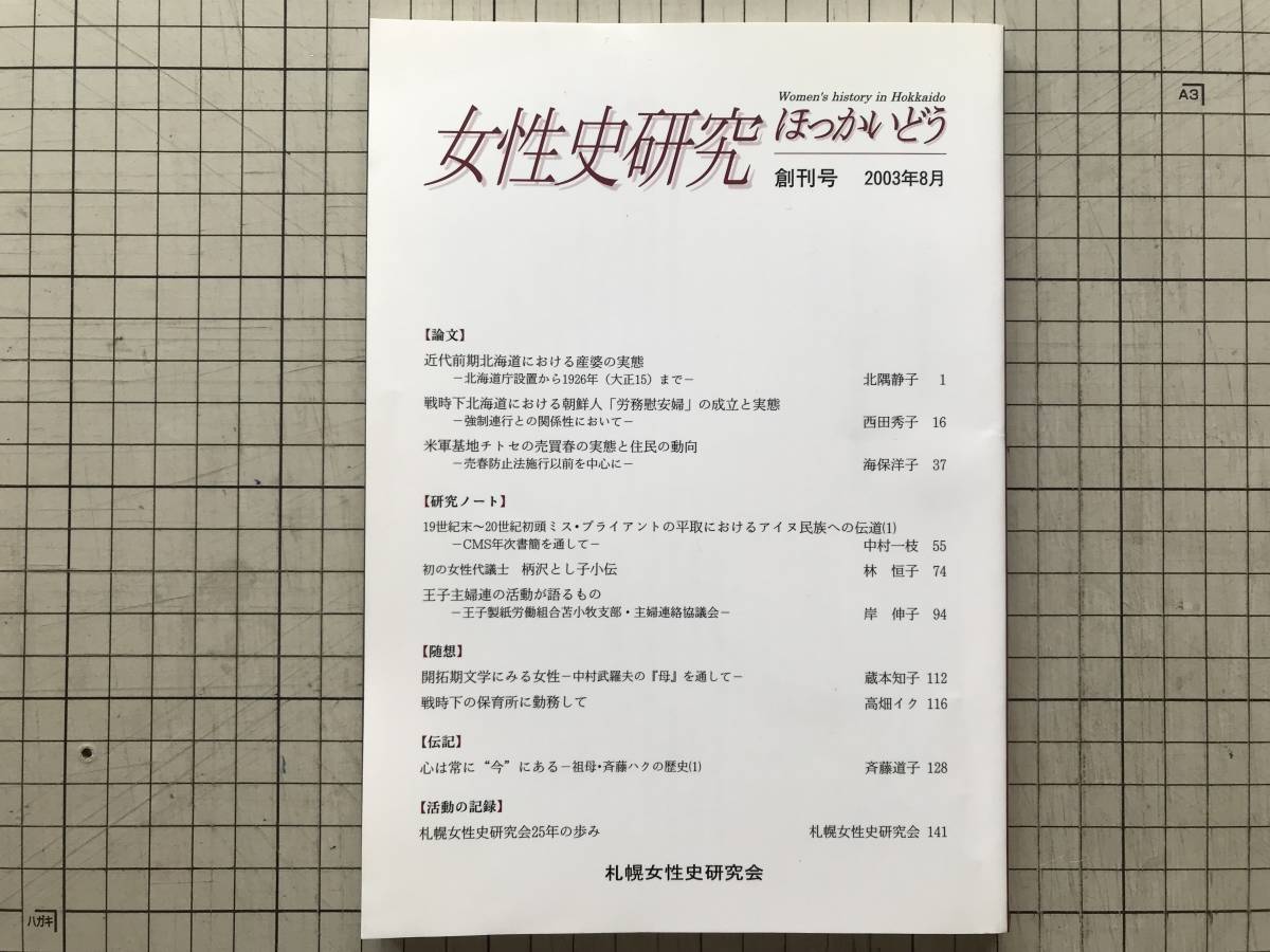 - 『女性史研究ほっかいどう 創刊号』札幌女性史研究会 2003年刊 ※産婆・朝鮮人「労務慰安婦」・平取・柄沢とし子・王子主婦連 他 08446