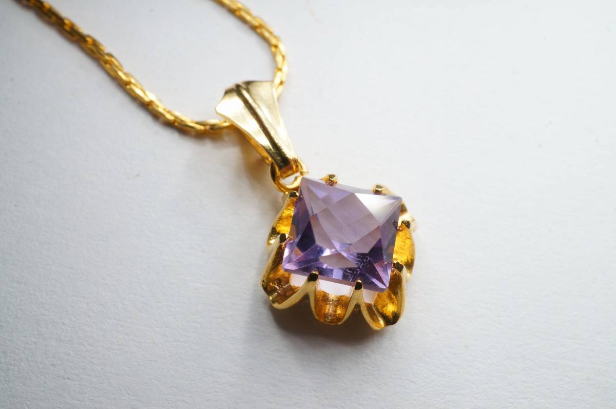 - 【特別即決価格!早い者勝ち!】極上天然紫水晶(アメジスト)オリジナルカット高透明度ペンダント⑥真鍮金具