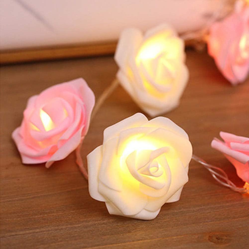 - 薔薇ストリングライトバラライト 6m 40LED USB ホワイト×ピンク