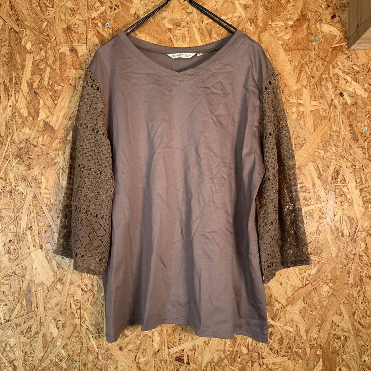 - 美品 未使用 BRICK HOUSE 大きめサイズ 袖レースカットソー 八分袖トップス レディーストップス 2270