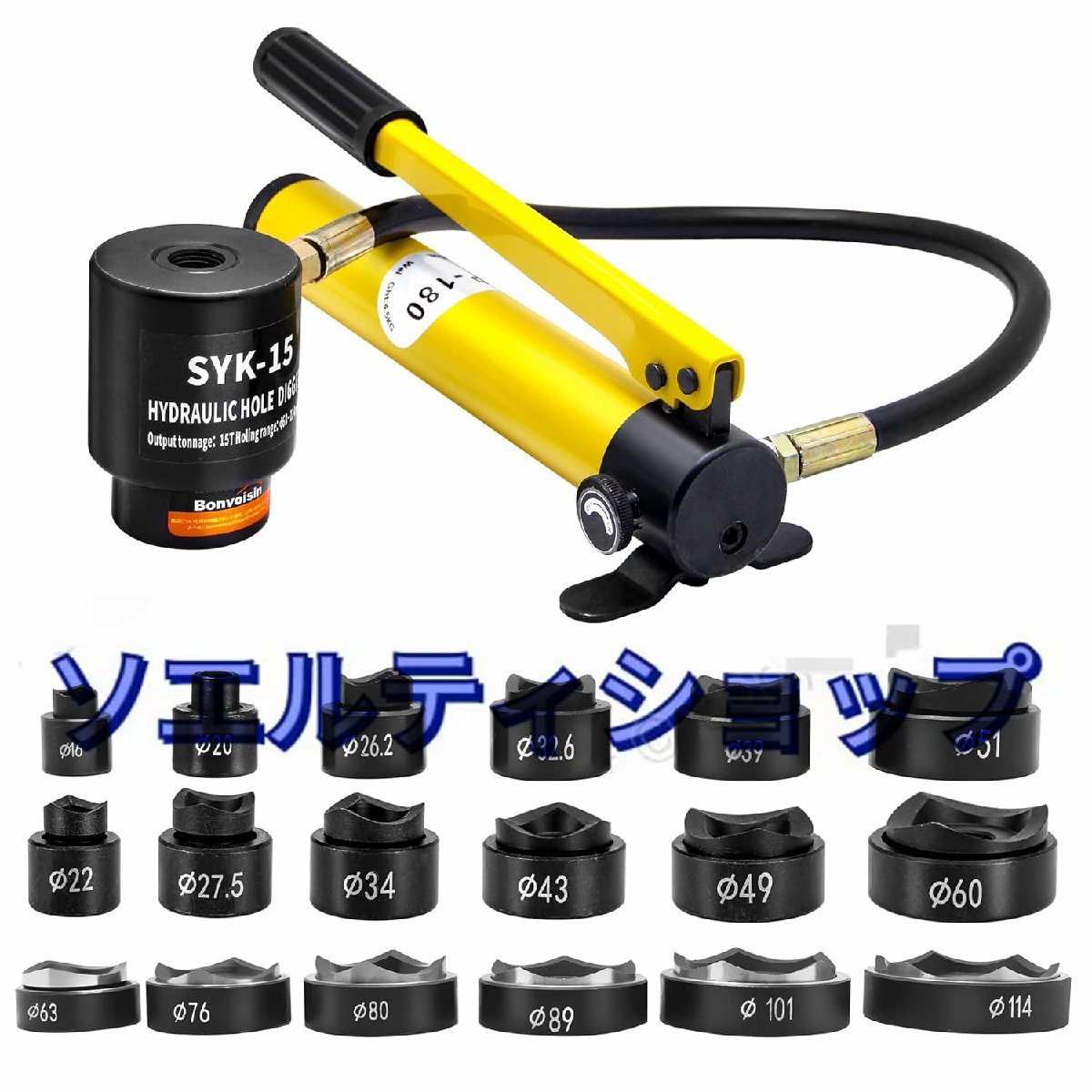 > 高品質★油圧パンチャー 手動穴あけパンチ 15トン (SYK-15(18種類金型)) ステンレス鋼 鉄板 工事 建築 工業 金型付き