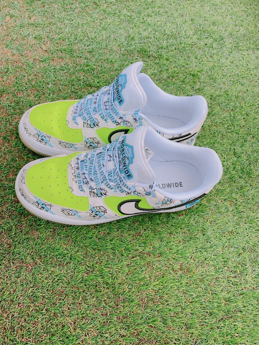 > ナイキ NIKE エアフォース1 エアフォース 総柄 ロー ローカット スニーカー メンズ 25cm 靴 くつ 黄色 ロゴ イエロー ホワイト AirForce1