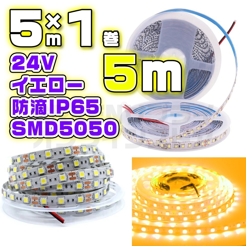 - 防水 60LED 24V LED テープライト 5m イエロー SMD5050