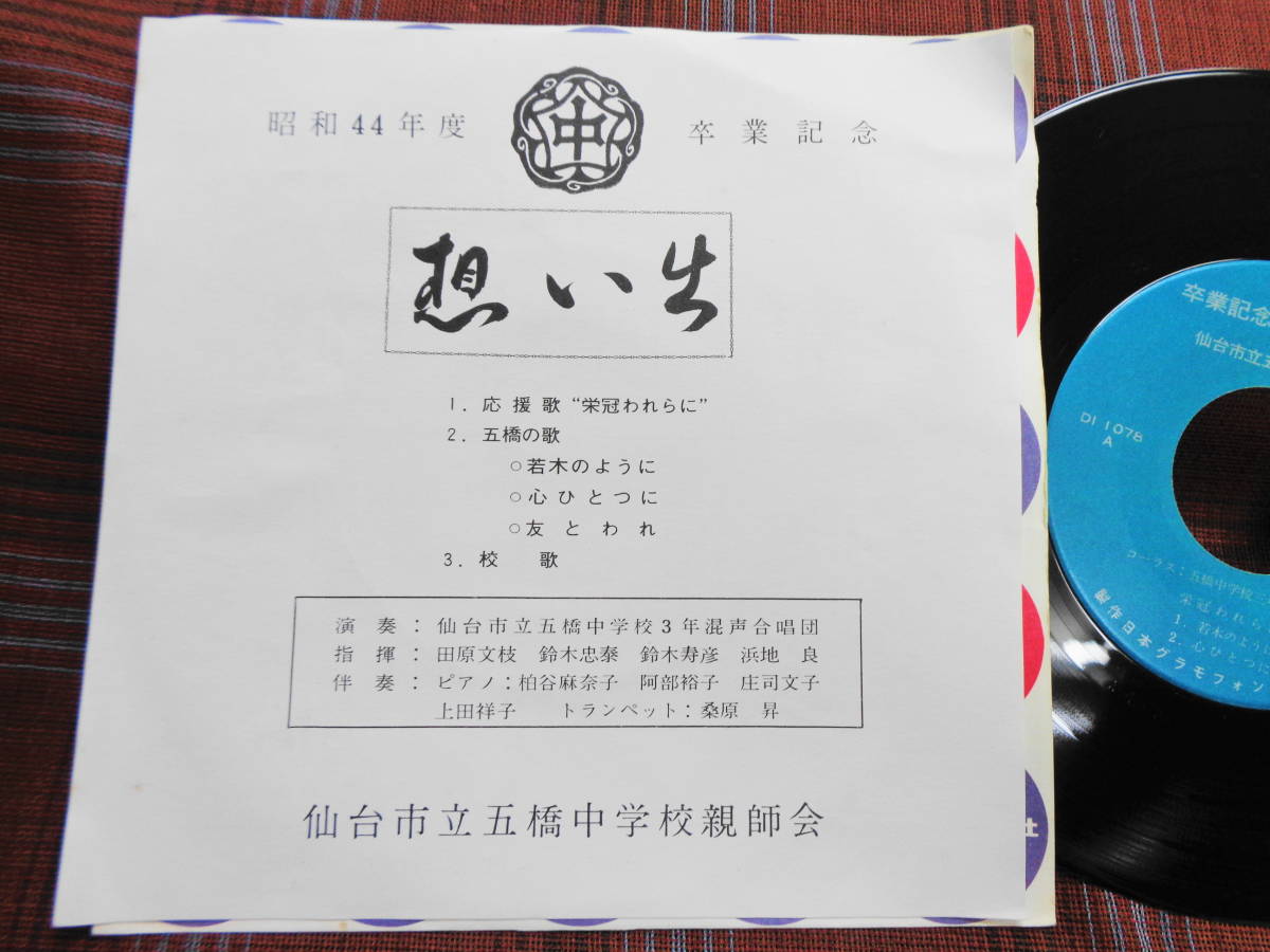 - e#5348◆EP◆ 仙台市立 五橋中学校 昭和44年度 卒業記念 校歌 応援歌 栄冠われらに 若木のように 心ひとつに 友とわれ 合唱