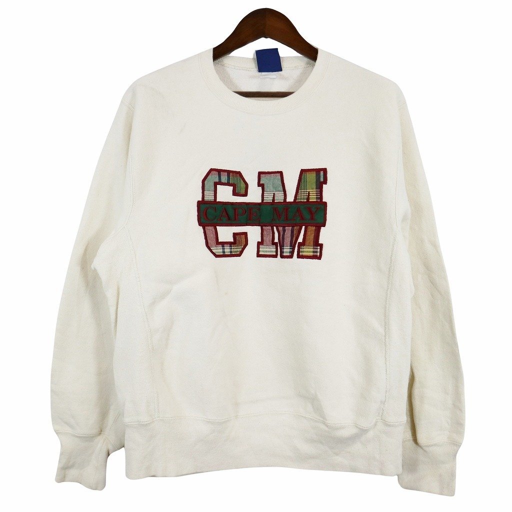 > 90年代 OARSMAN ワンポイント スウェット CAPE MAY ケープメイ アイボリー (メンズ L相当) 中古 古着 O4666
