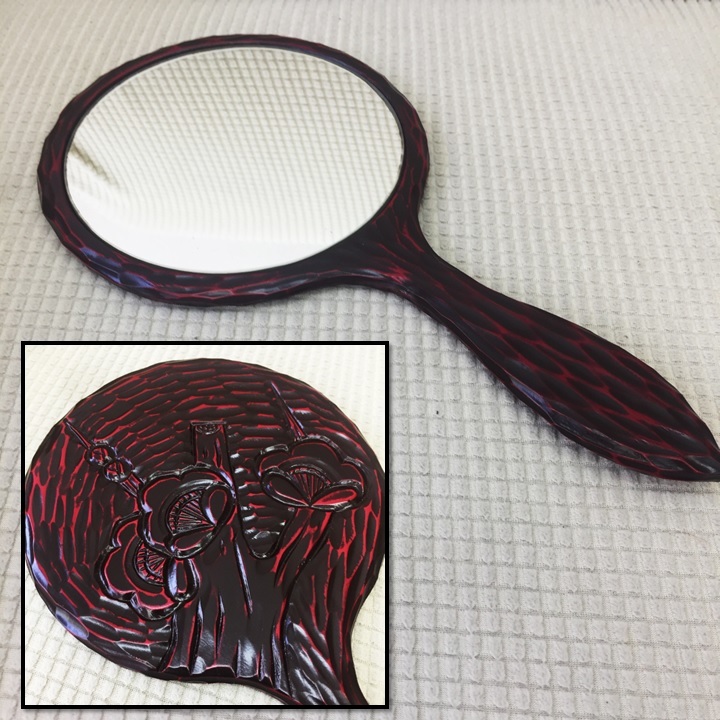 > [雑貨] 手鏡 ミラー メイク道具 化粧小物 レトロ アンティーク調 ビンテージ調 和風 懐かしいデザイン モダン シック 花柄 赤茶色系
