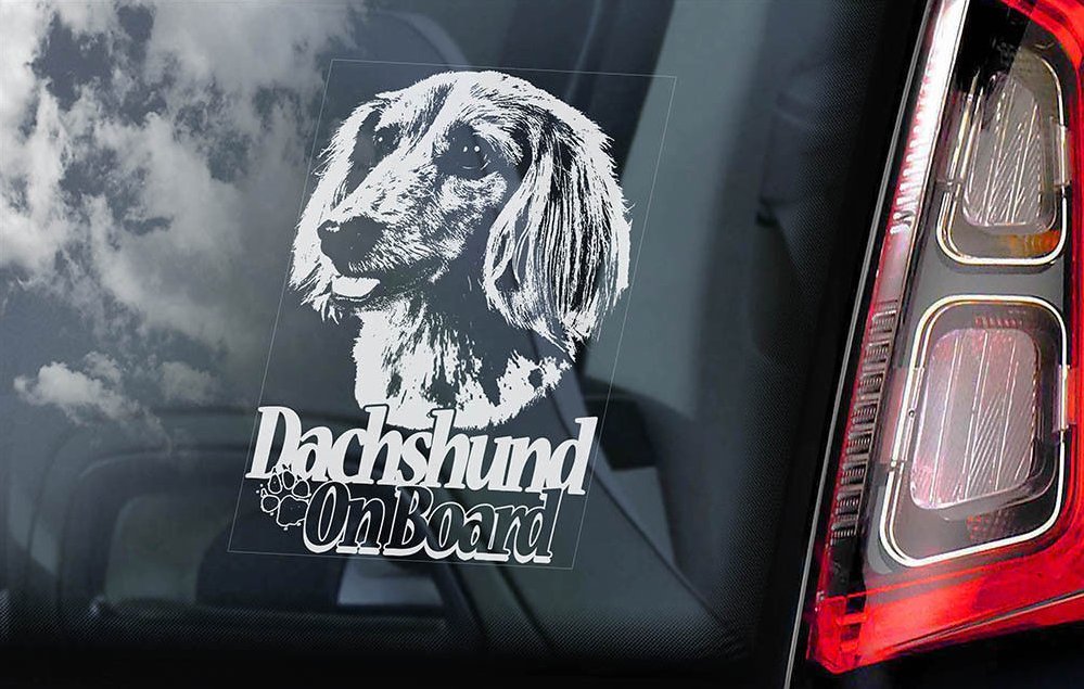 - ◆送無【ダックスフント/ダックス】外張り カーステッカー 145×100mm*外貼り@カー ステッカー ウインドウ シール@DOG ON BOAD 犬 D8 2305
