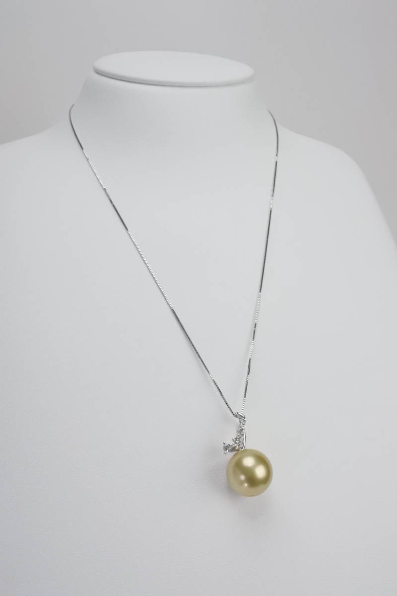 > ITALY製 K18WGゴ-ルド 南洋真珠 ダイヤ0.12ct K18WG チェーン付き ネックレス *未使用保管品