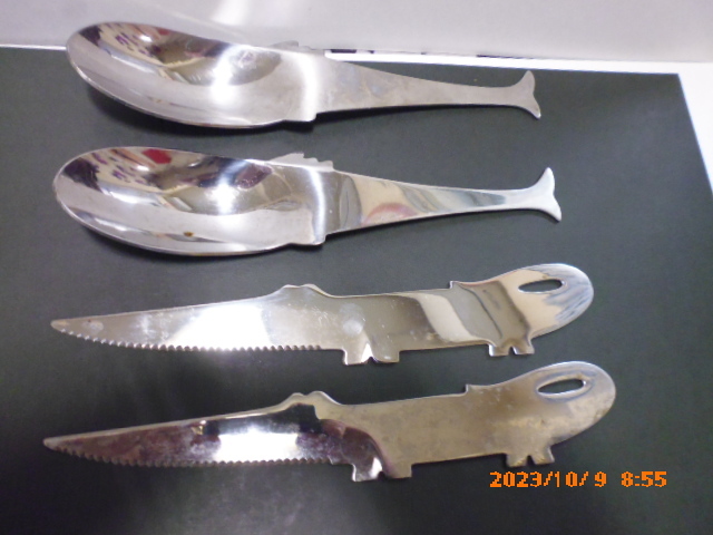 - 食器 くじら型スプーン(大)2本と ワニ型ナイフ(大)2本
