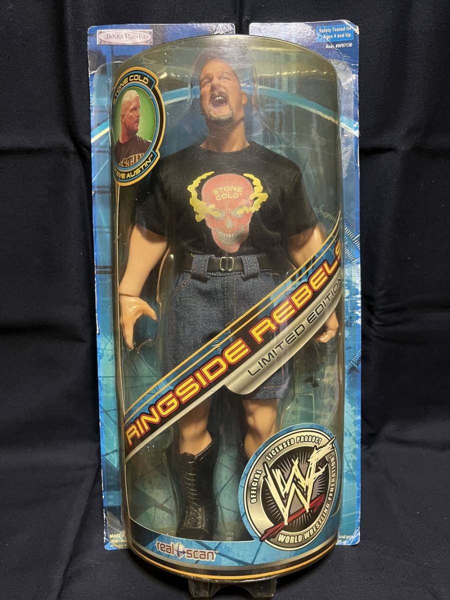 - JAKKS:WWF RINGSIDE REBELS SERIES 1 スティーブ・オースチン w/T-Shirt&Jeans (ダメージ有り、未開封品)