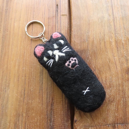 - 〓 新品 〓 リップクリーム ホルダー 〓 黒猫 ネコ キーホルダー ハンドメイド フェルト エスニック アジアン おしゃれ 〓T058