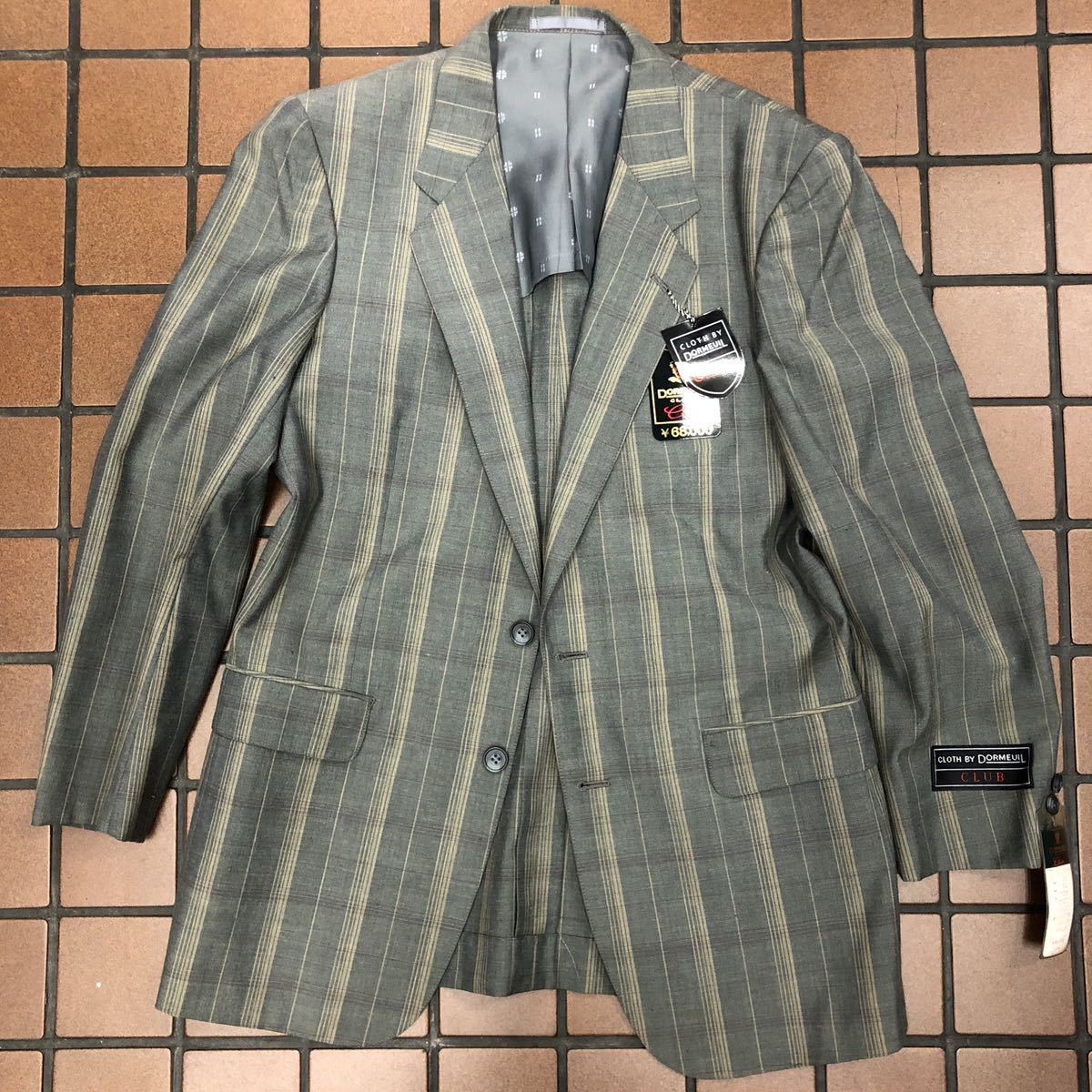 > 新品☆タグ付き68,000円のDORMEUIL 2つボタンテーラードジャケット サイズA8 グラスグリーン系オシャレチェック柄日本製ウール麻混毛台場