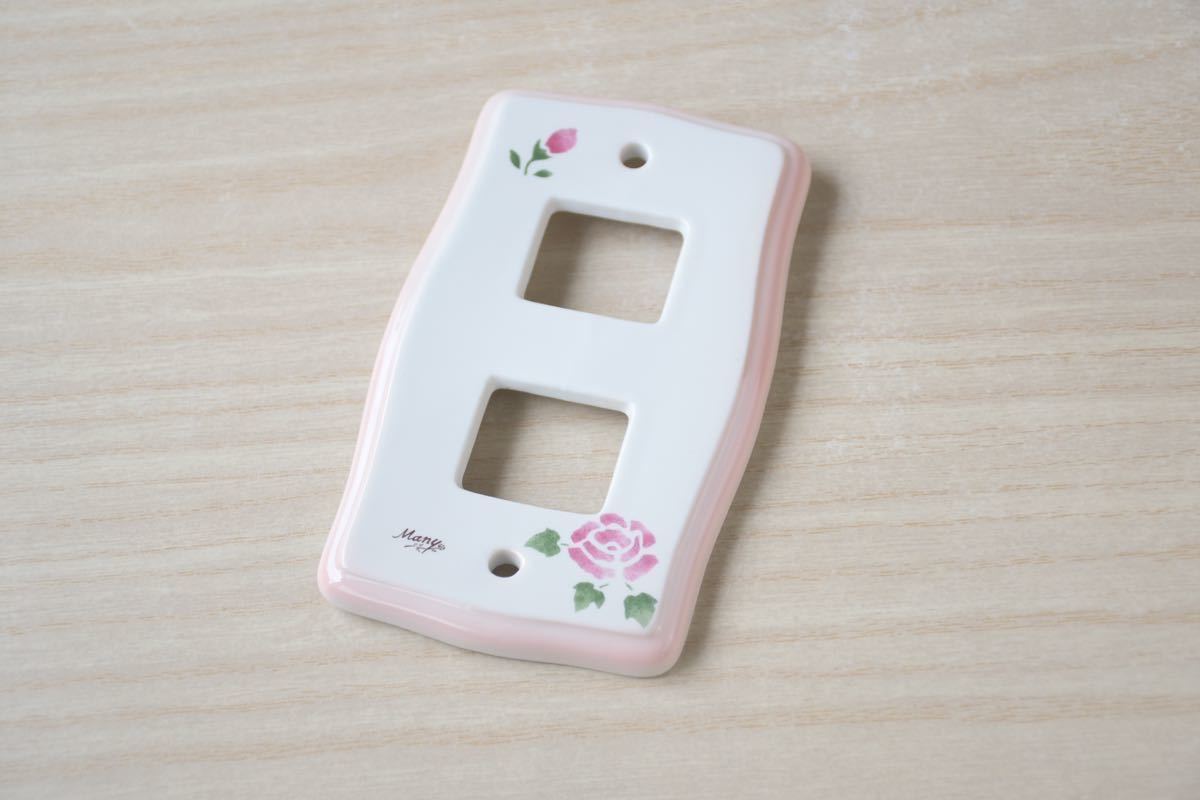 > マニー ローズ スイッチプレート スイッチカバー コンセントカバー 2ケ口 陶器 日本製 新作