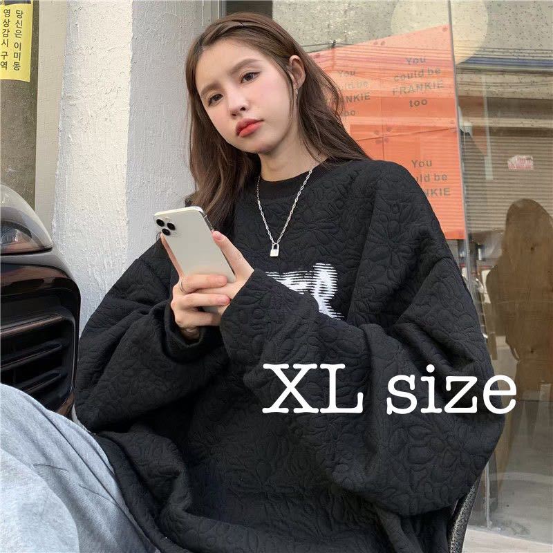 - トレーナー スウェット プリント 花柄 長袖 トップス 黒 ブラック XL