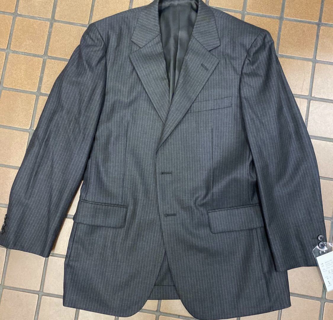 - 新品 未使用 激安 カネボウ・オム・ナノペルスーツ ウール100% セットアップ サイズA7 チャコールグレーペンシルストライプ Kanebo