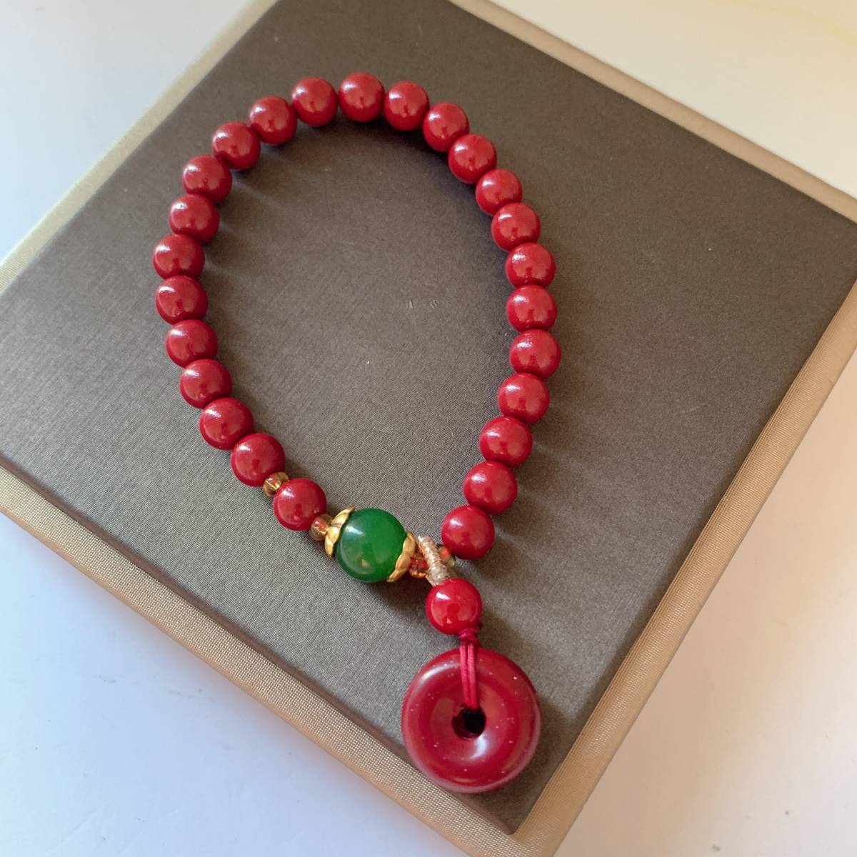 > ◇シナバー(辰砂)+台湾碧玉1粒◇ブレスレット◇パワーストーン◇巾着袋付き◇プレゼント025B101910