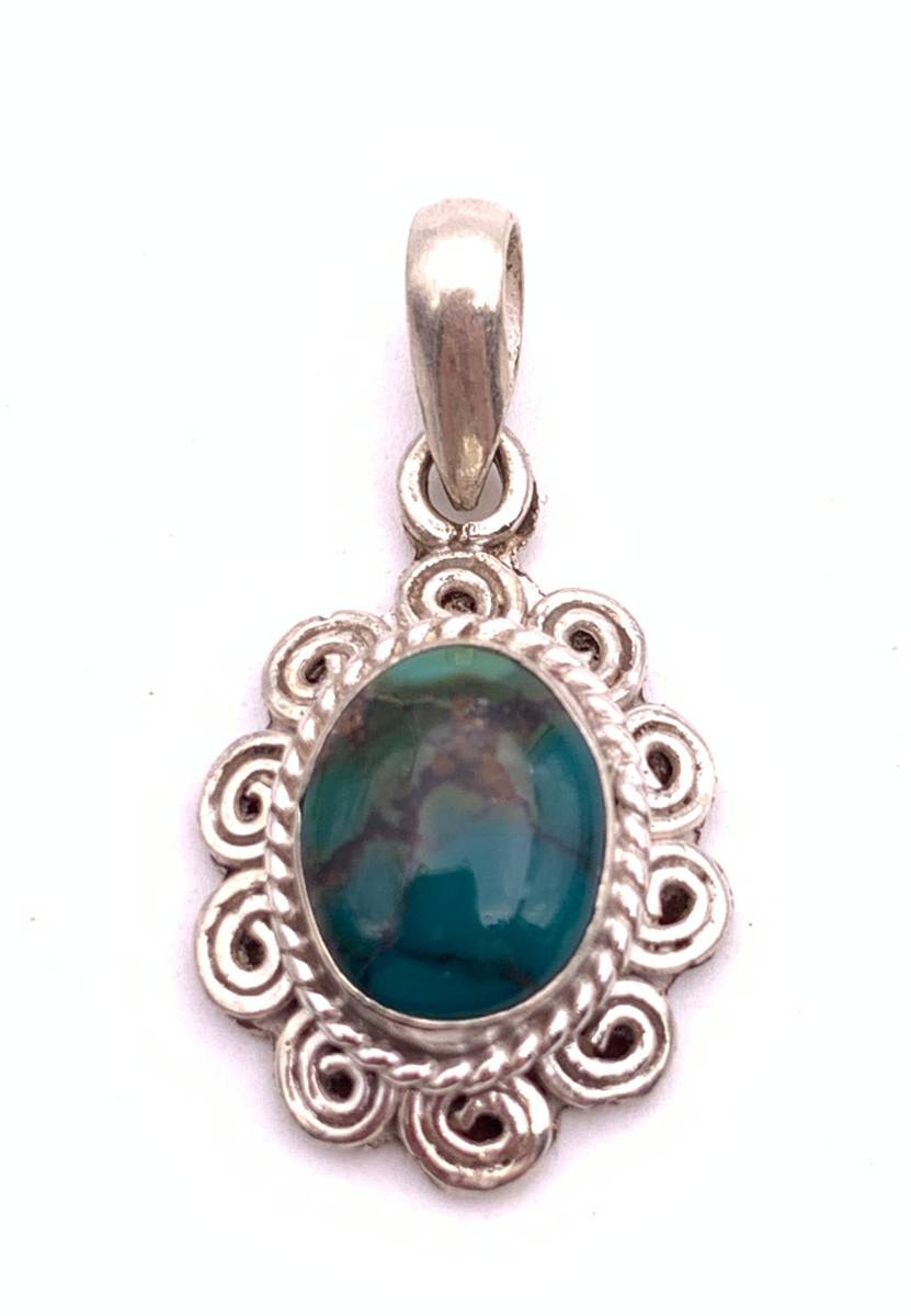 - 天然石ターコイズsilver925トップ/HANDMADE-TQR9