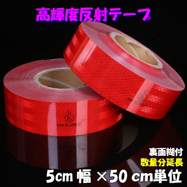 - 高輝度反射テープ 5cm幅×100cm レッド 赤リフレクト反射シール トラック自動車バイク自転車などの事故防止安全対策に反射ステッカー
