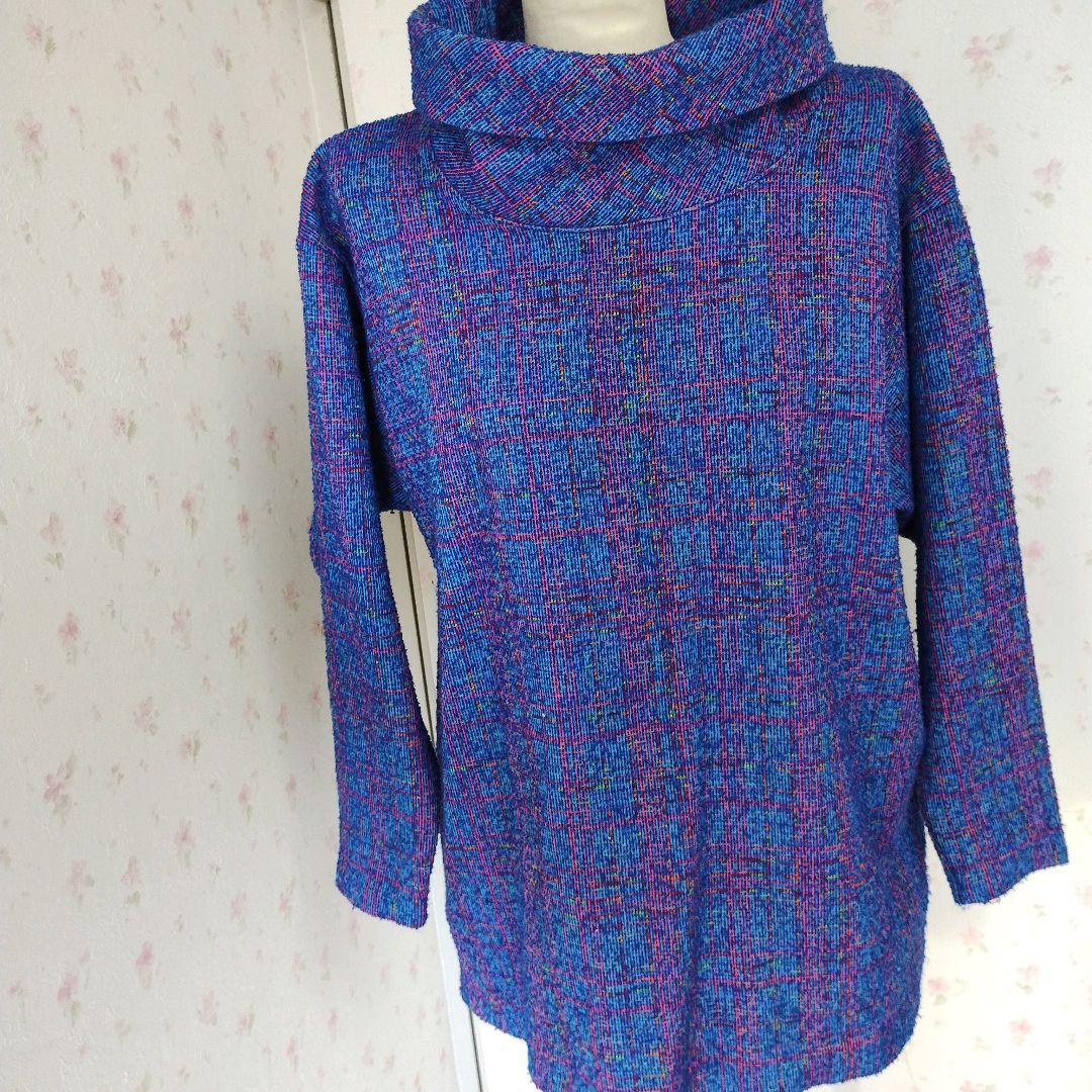 - VICKY ハイネック 長袖 ジャージニット ブルー マルチカラー