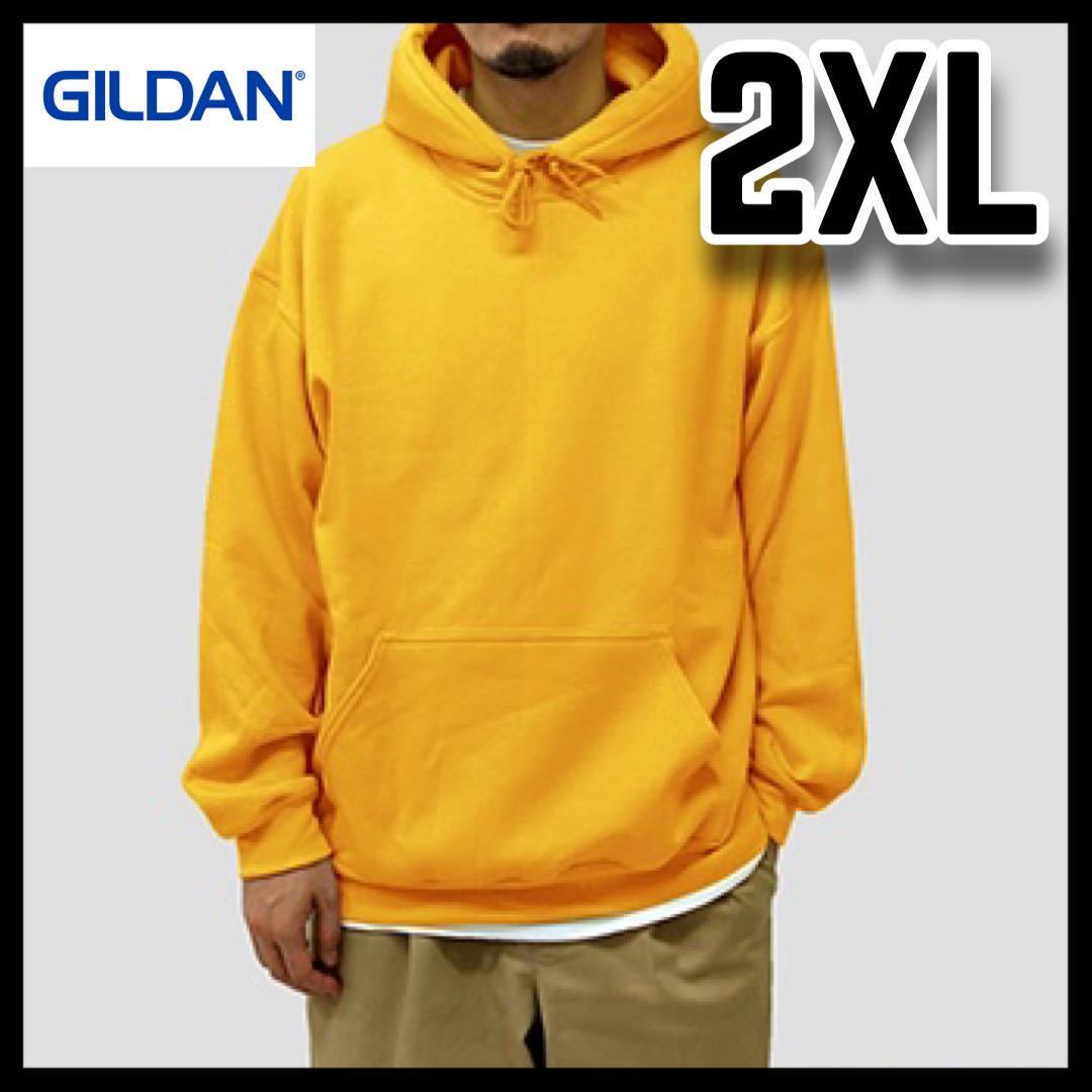 - 新品未使用 GILDAN ギルダン 8oz プルオーバーパーカー 無地かぶりパーカー 裏起毛 ゴールド 2XL サイズ ビッグシルエット フード