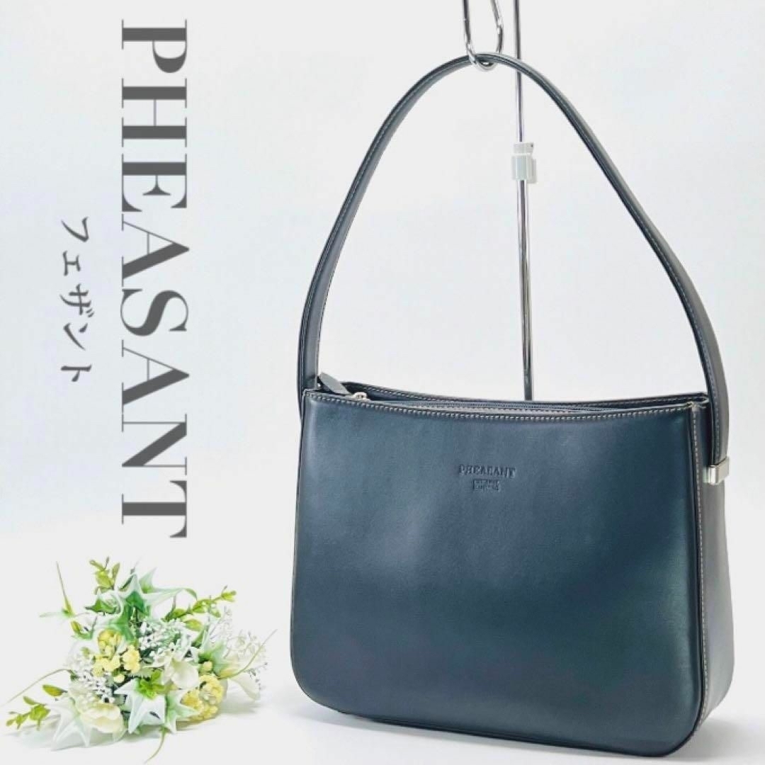 - 美品 フェザント PHEASANT ショルダーバッグ ハンドバッグ 肩がけ レザー ネイビー 紺 レディース