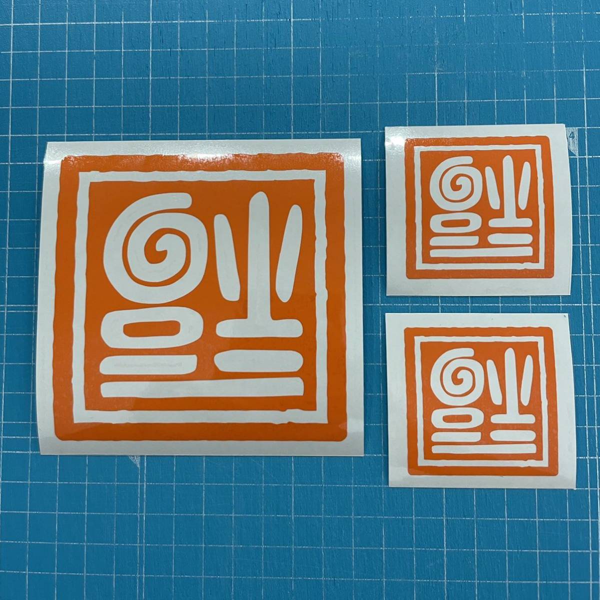 - 3枚セット 逆さ福 倒福 カッティングステッカー オレンジ